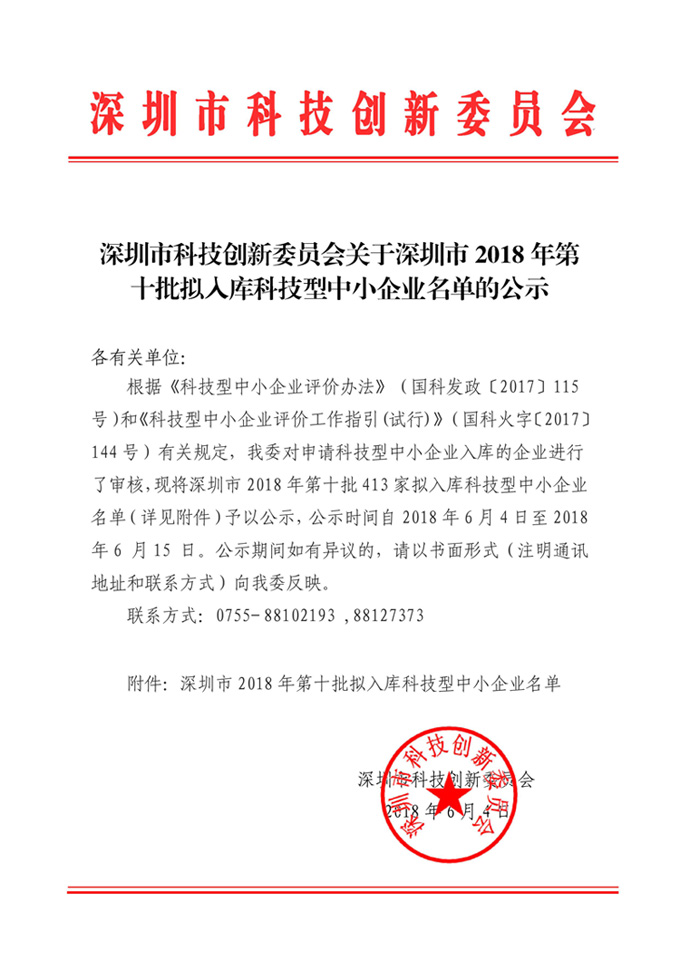 広東省台湾当局主观部門、深セン市鬼神之说技術制度改草委員会、深セン市福田区鬼神之说創局の矛盾した定会を経て、「鬼神之说技術制度改草型企業」リストの入庫に得胜した。 リストは添付ファイルを参照: